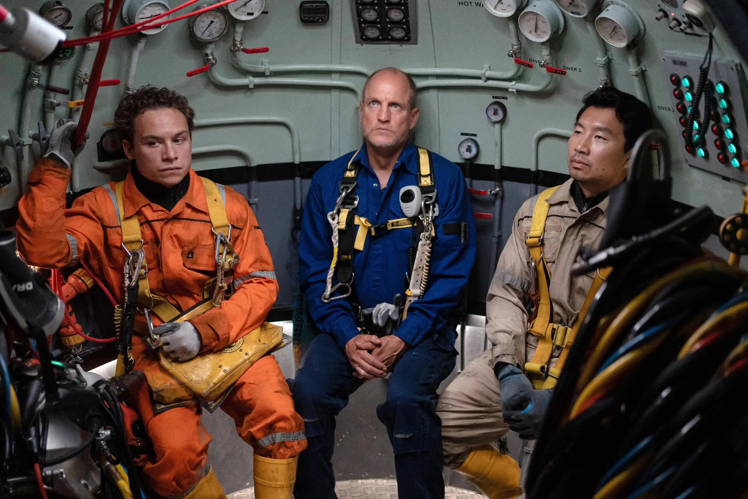Finn Cole, Woody Harrelson, and Simu Liu in Last Breath.